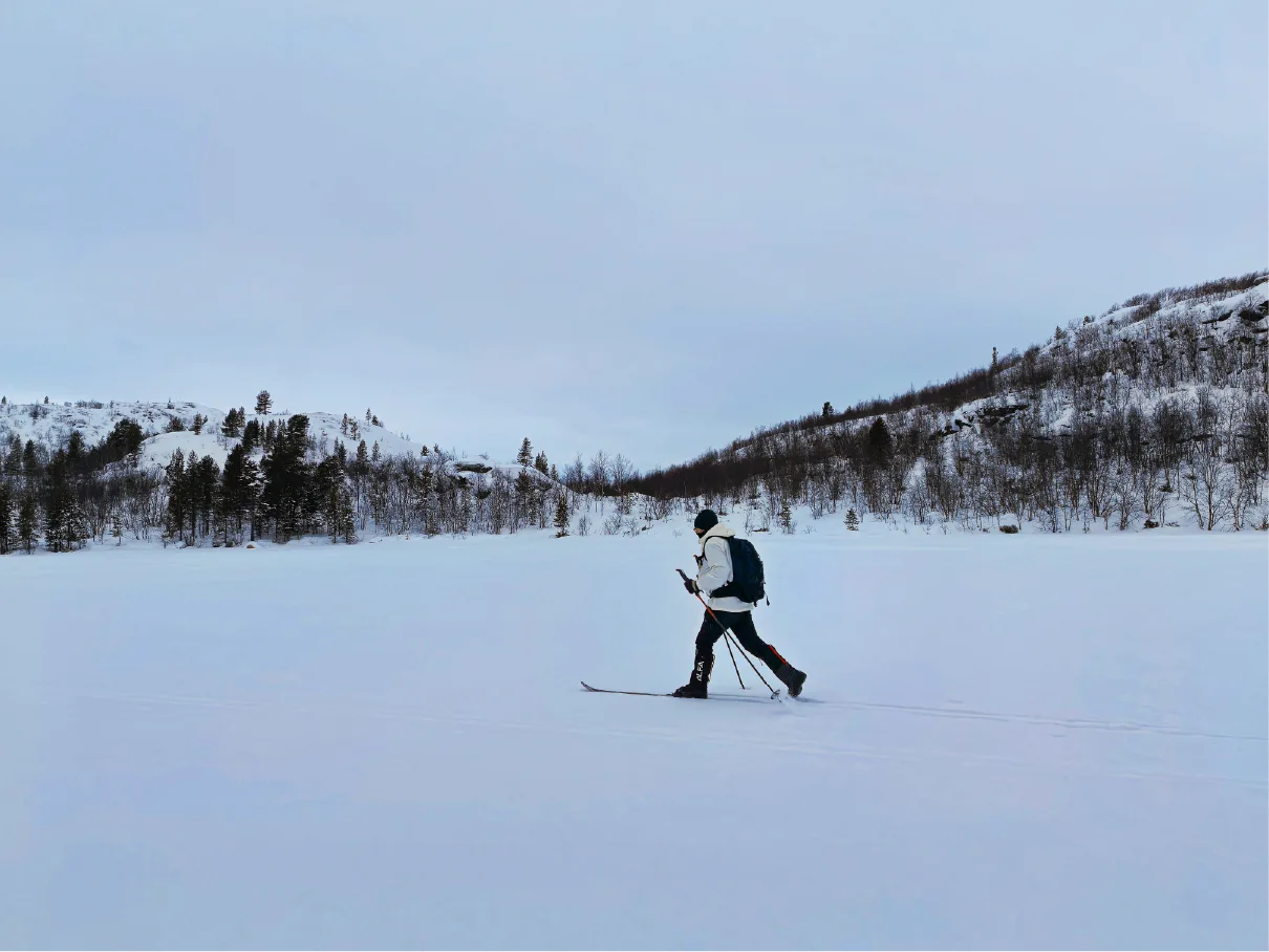Glide silently through Arctic winter landscapes on Nordic backcountry skis ("fjellski"). A relaxed, beginner-friendly introduction to exploring Kirkenes the Norwegian way.