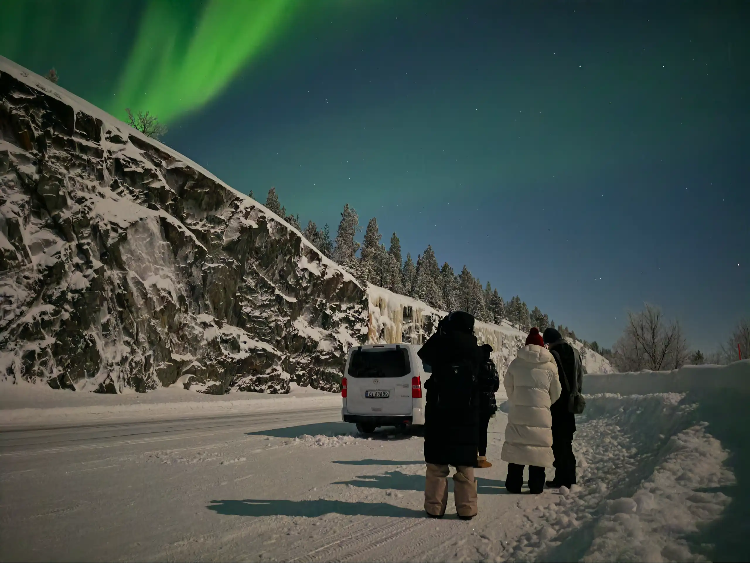 Eine andere einfache Möglichkeit, hierher zu gelangen, ist über Finnland. Fliegen Sie zum Flughafen Ivalo (IVL) und fahren Sie mit dem Auto, Taxi oder einem privaten Transfer über die Grenze nach Norwegen. Diese Route ist sehr beliebt, vor allem im Winter.